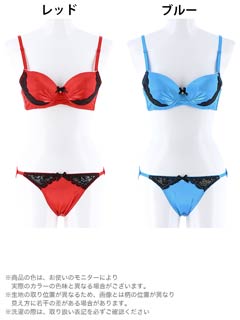 SEXYさを演出するランジェリー♪カラバリは肌に映えるビビッドカラーのブルーとレッドの2色展開です!!カップ裏は厚手の内蔵パッドでバストの盛れ度も抜群☆ショーツはさりげない透け感がエロい