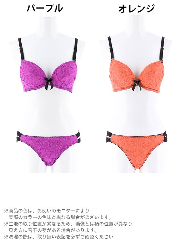 レースランジェリー♪ブラは、バストの形を綺麗に魅せてくれるモールドカップです。パッドは、分厚い内蔵パッドで身に着けるだけで簡単に盛れちゃいます♪ショーツのサイドはレースをあしらった