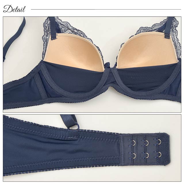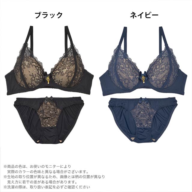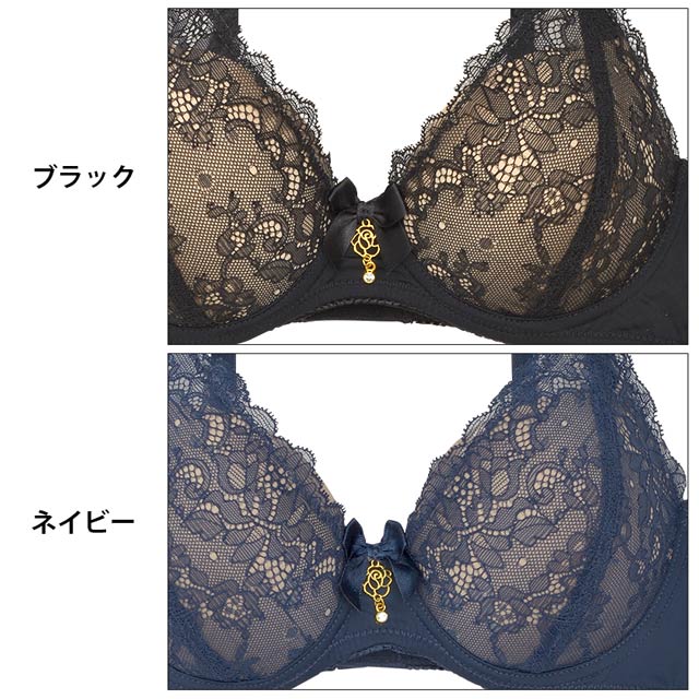 まるで素肌にそのままレースを纏っているような、色っぽいヌーディーレースデザインのブラセット。胸元で輝く薔薇モチーフ&ラインストーンチャームが高級感あるアクセントに。ブラジャーは着け心地軽やかな"ノンワイヤー"仕様なので、一日中着用していてもストレスフリーに過ごせます。カップ内側はバストを脇に逃さない"横流れ防止パネル"付き。履き心地の良いベーシックショーツが付いてデイリー使いに最適。夜はそのまま勝負下着としても活躍できる万能SEXYランジェリーです。