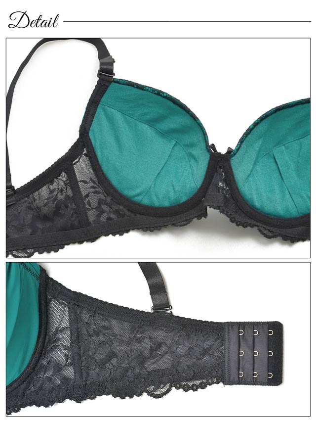 グリーン』のカラーバリエーションです♪カップの両サイドからかぶせたシフォンは胸をより立体的に魅せてくれます。ストラップは15mm幅で、