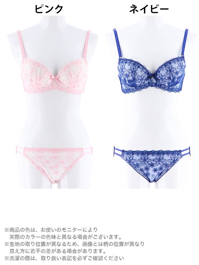 刺繍、レースを飾ったフェミニンなブラセット。ジャスミンをイメージした刺繍がホワイト生地に映えて、優雅な印象に。お揃いのショーツはサイドに