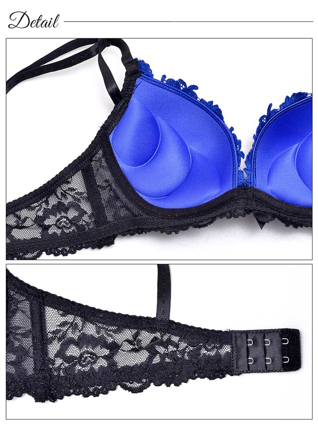 三角ストラップを使用、さらにカップの内蔵パッドは、胸が中心に流れるようにしたカーブ風下厚パッド。カーブの方向に沿って胸が自然と中心に寄る効果があります!盛れるのにノンワイヤーだから締め付け感がとってもやさしい♪