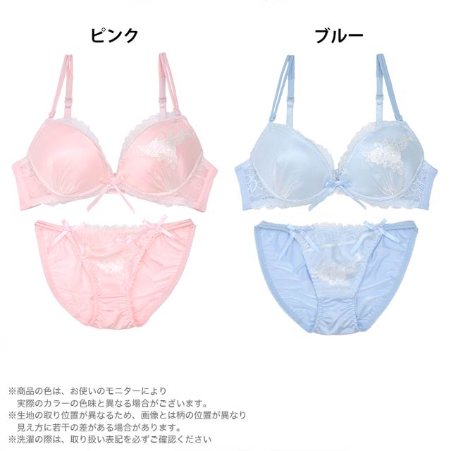 甘いパステルカラーのカップの片側に白い薔薇モチーフ刺繍を施したブラセット。周りにはパステルな色合いと相性バツグンな繊細なホワイトレースをあしらい、お姫様のような雰囲気に♪ストラップとショーツのサイドは素肌に絡みつく2本のマカロニコードで色っぽさを兼ね備えたデザイン♪さらにショーツの両サイドに飾り付けたCUTEなリボンでカレもメロメロになること間違いなしの甘モテランジェリーです♪