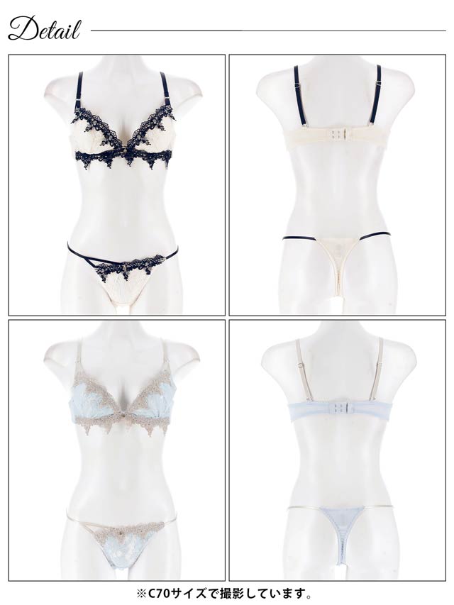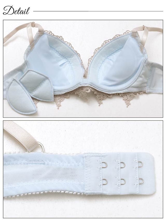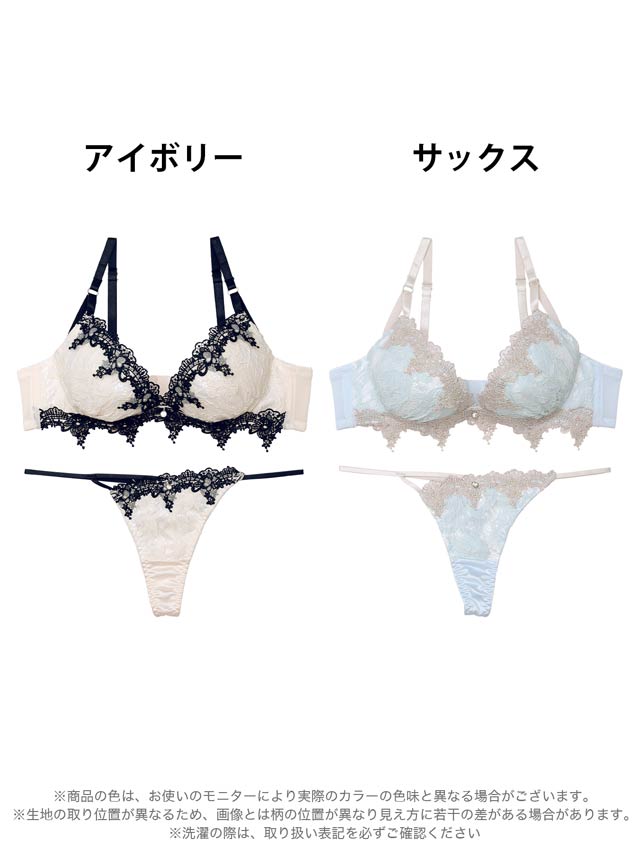 ダスティブルームエンブロイダリー育乳脇高ブラジャー&バック透けフルバックショーツ