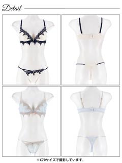 オールレースカットストリング育乳脇高ブラジャー&バック透けフルバックショーツ