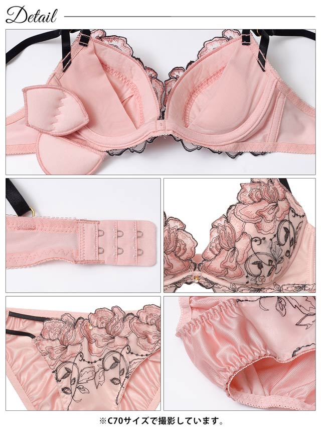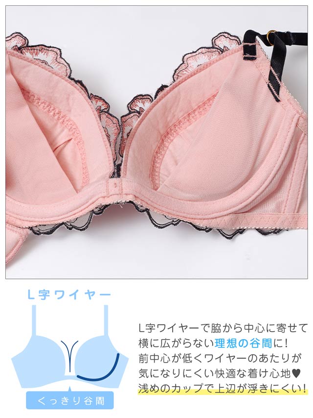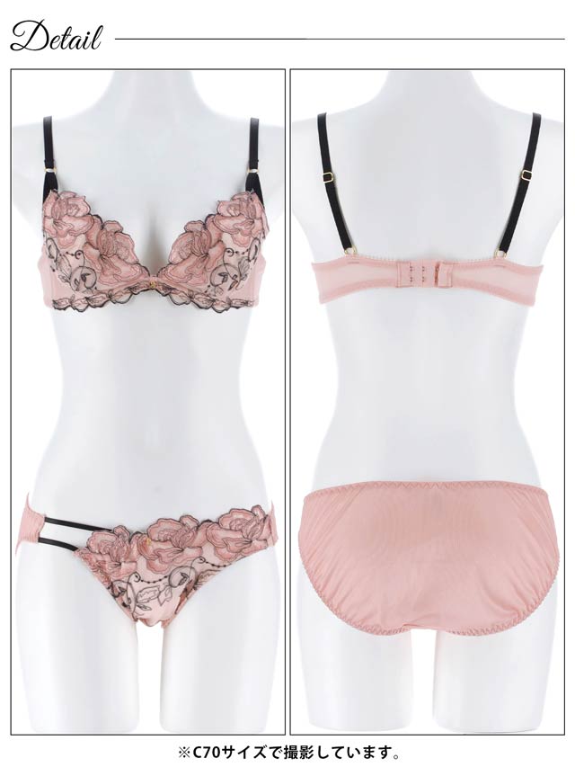 ダスティブルームエンブロイダリー育乳脇高ブラジャー&バック透けフルバックショーツ