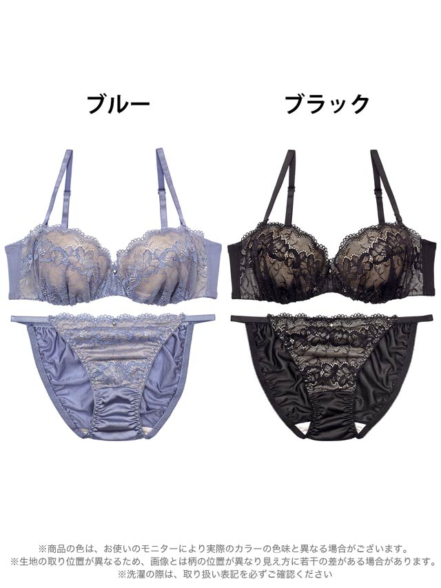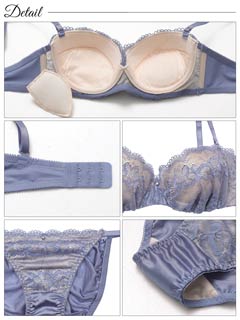 ダスティブルームエンブロイダリー育乳脇高ブラジャー&バック透けフルバックショーツ