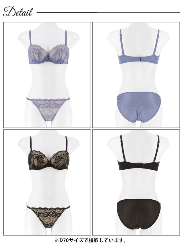 オールレースカットストリング育乳脇高ブラジャー&バック透けフルバックショーツ