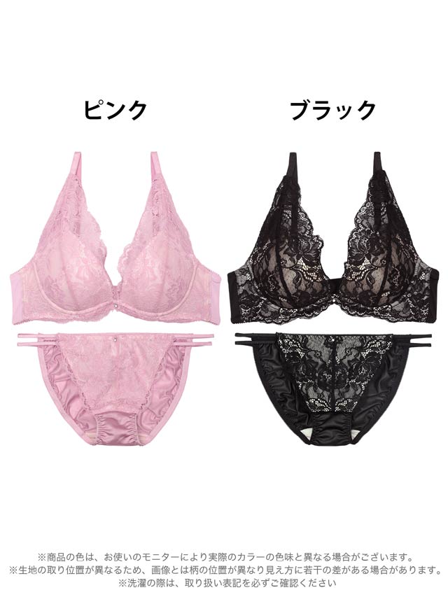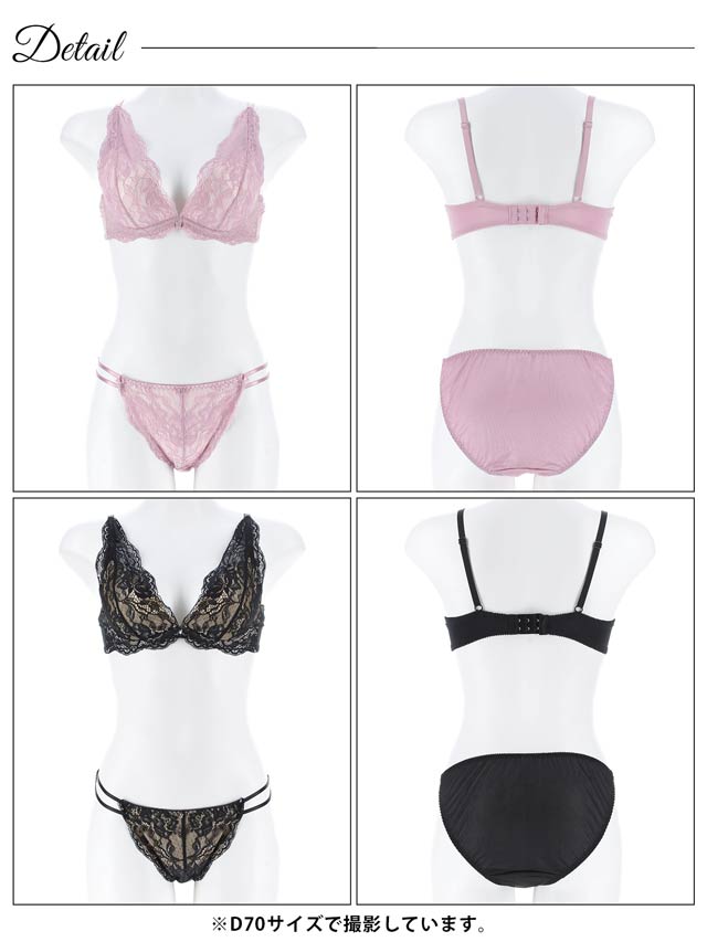 オールレースカットストリング育乳脇高ブラジャー&バック透けフルバックショーツ