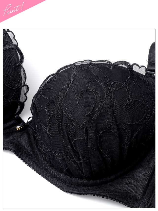 ダブルリボンメロウハート育乳脇高ブラジャー&バック透けフルバックショーツ[激売れ]