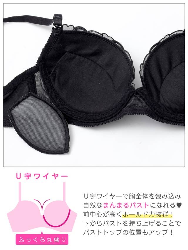 ダブルリボンメロウハート育乳脇高ブラジャー&バック透けフルバックショーツ[激売れ]