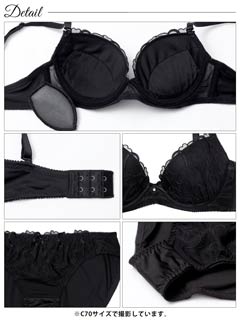 大判フラワー総レース育乳脇高ブラジャー&バック透けフルバックショーツ