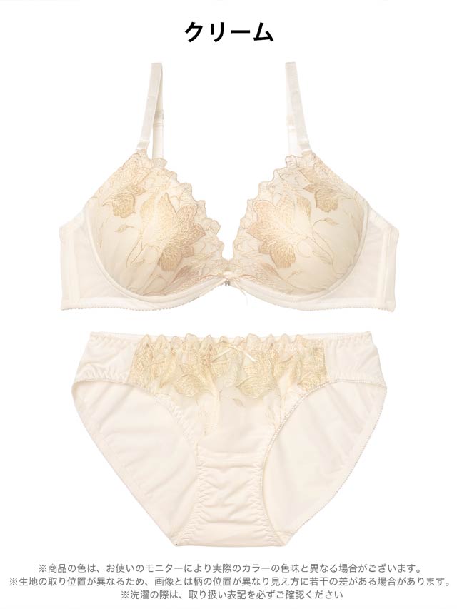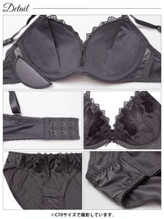 ダスティブルームエンブロイダリー育乳脇高ブラジャー&バック透けフルバックショーツ