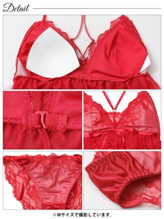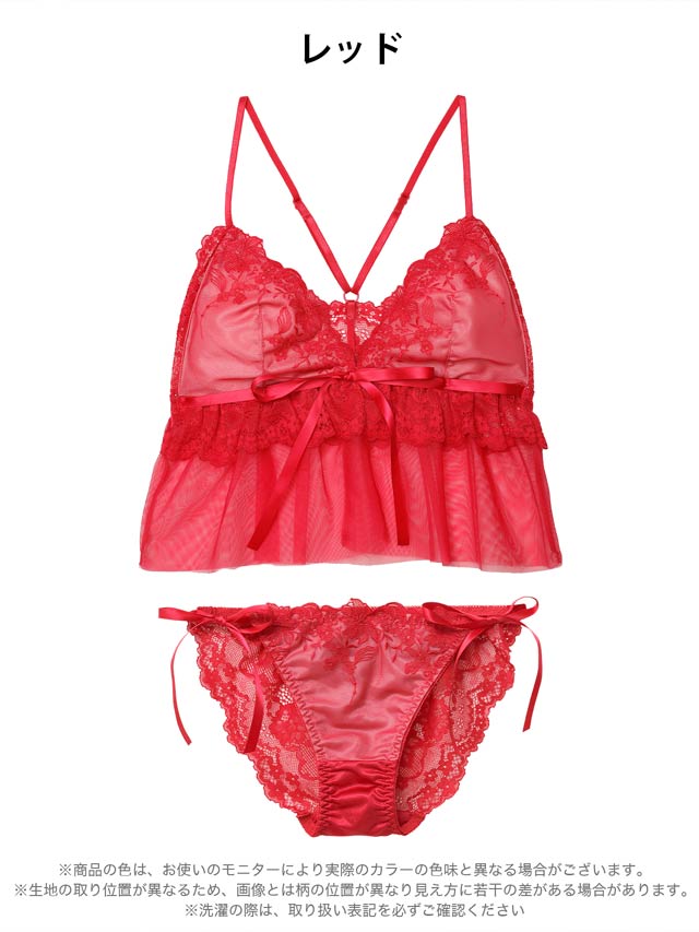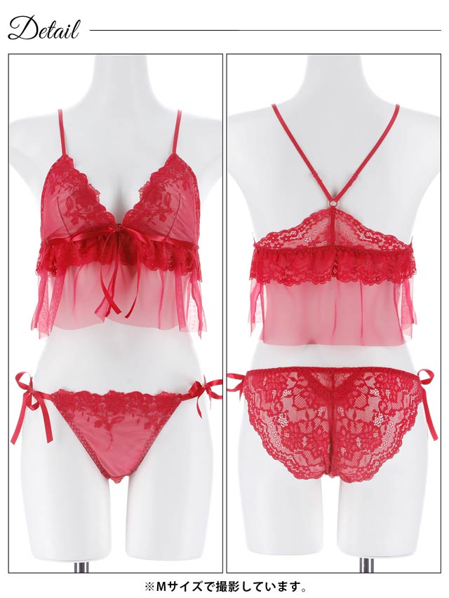 • 2/4新作!【ノンワイヤー】フェアリーフルールレーシィブラジャー&サイド紐バック透けフルバックショーツ[大人気](レッド-S)