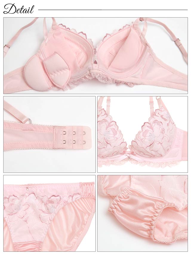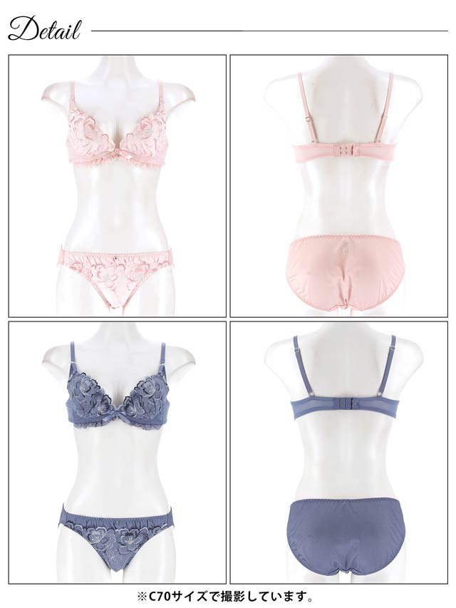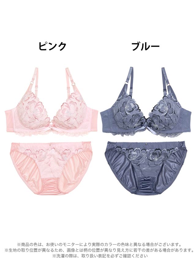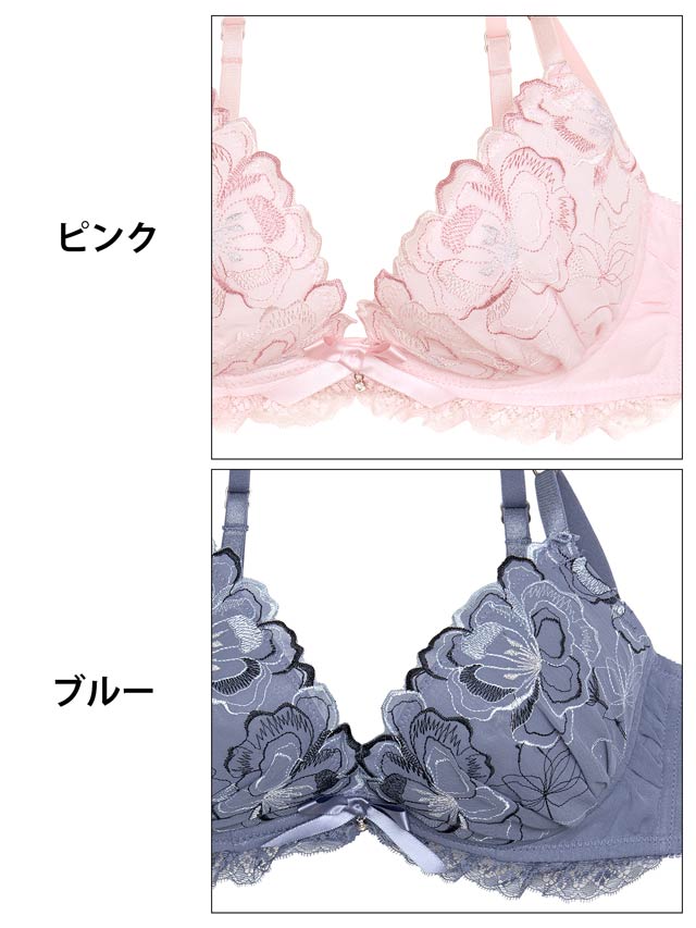 ダスティブルームエンブロイダリー育乳脇高ブラジャー&バック透けフルバックショーツ