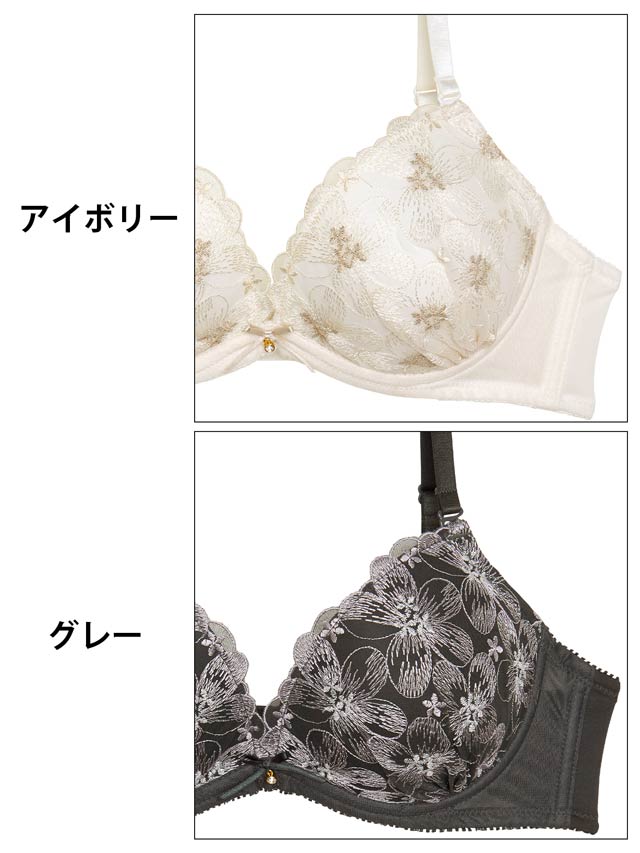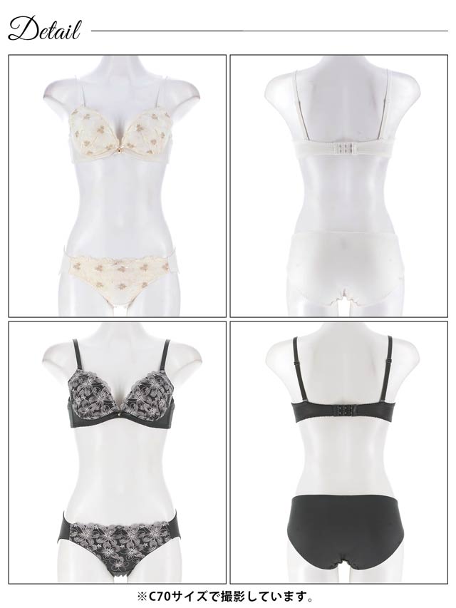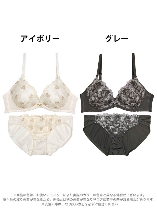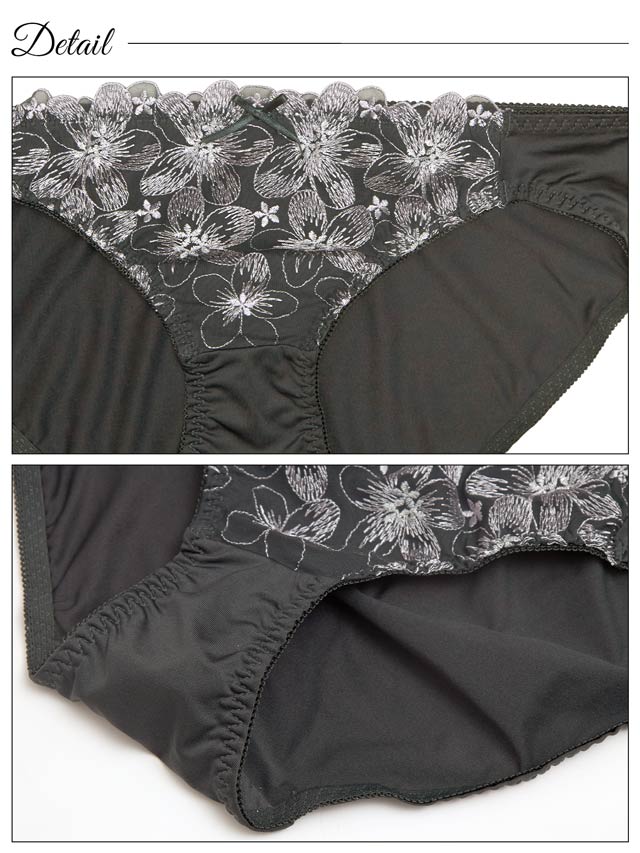 ダスティブルームエンブロイダリー育乳脇高ブラジャー&バック透けフルバックショーツ