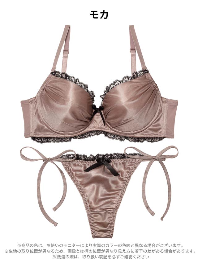 3/2新作!【三上悠亜着用】【EFサイズ】メルティサテンレースブラジャー&サイド紐Tバックショーツ[大人気]