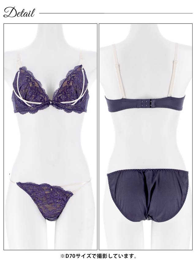 オールレースカットストリング育乳脇高ブラジャー&バック透けフルバックショーツ