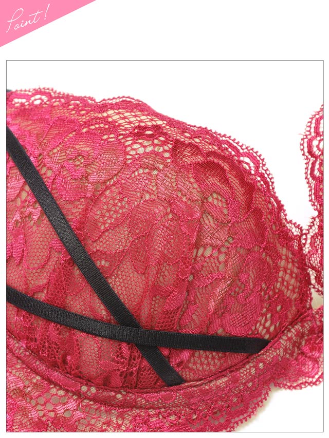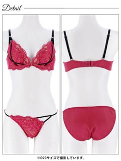 オールレースカットストリング育乳脇高ブラジャー&バック透けフルバックショーツ