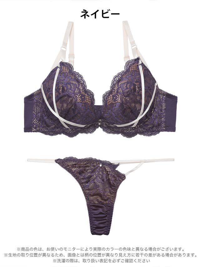オールレースカットストリング育乳脇高ブラジャー&バック透けフルバックショーツ