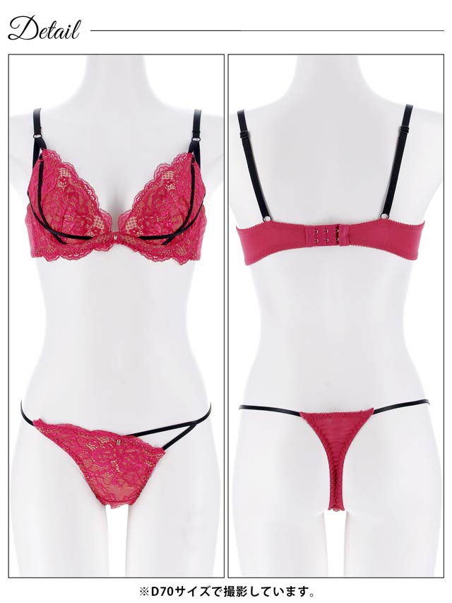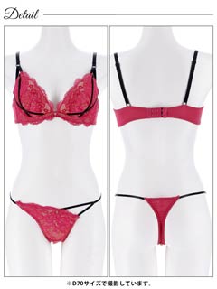 オールレースカットストリング育乳脇高ブラジャー&バック透けTバックショーツ