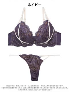 オールレースカットストリング育乳脇高ブラジャー&バック透けTバックショーツ