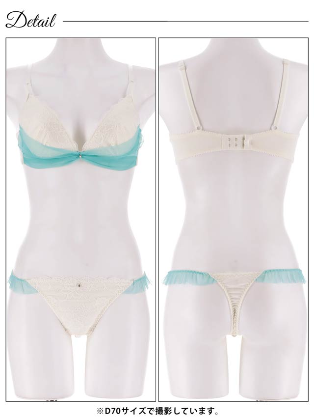 1/12新作!【かとゆり着用】【EFサイズ】ドレープリボンチュールブラジャー&Tバックショーツ[大人気]