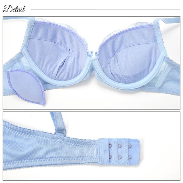 ラグジュアリーフラワーレース育乳脇高ブラジャー&バック透けフルバックショーツ[プチプラ]