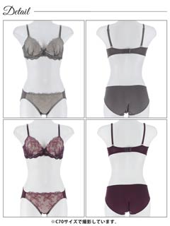 フロレゾンローズレース育乳脇高ブラジャー&サイド紐バック透けフルバックショーツ