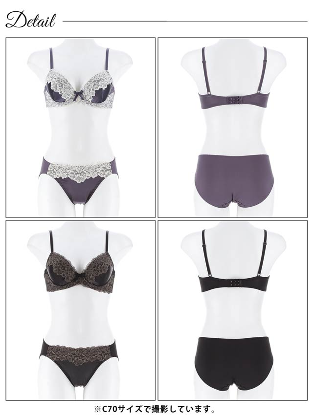 オールレースカットストリング育乳脇高ブラジャー&バック透けフルバックショーツ