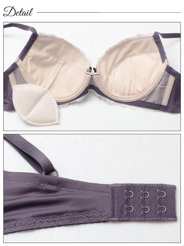 ダスティブルームエンブロイダリー育乳脇高ブラジャー&バック透けフルバックショーツ