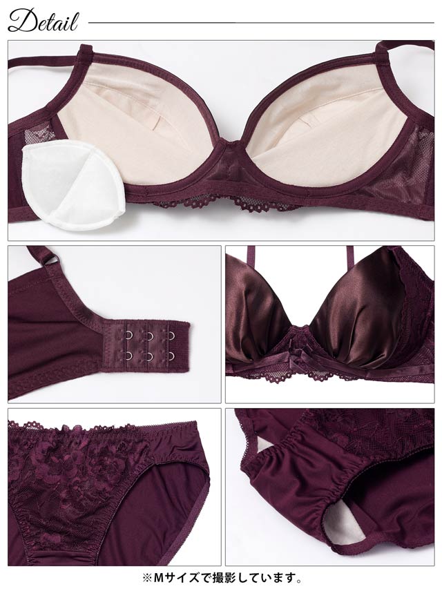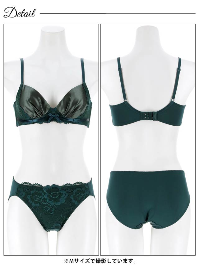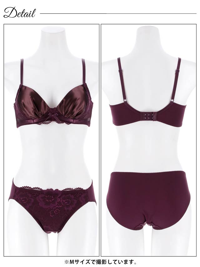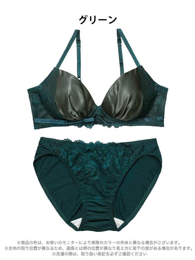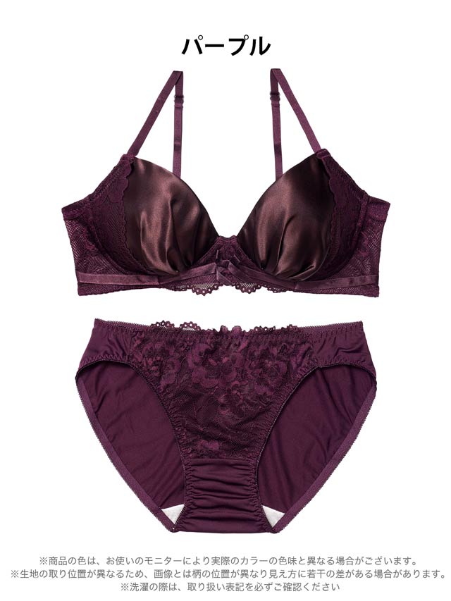 12/8新作!【ノンワイヤー】トワイライトサテンレースブラジャー&フルバックショーツ[激売れ]