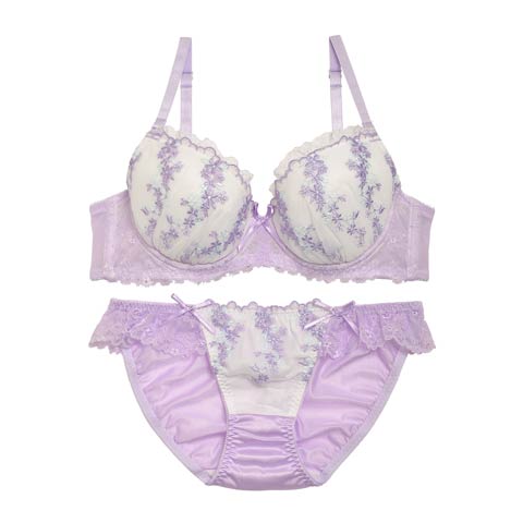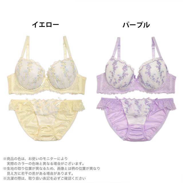 【Dolce Fiora】パステルファンシーフラワーエンブロイダリーブラジャー&フルバックショーツ