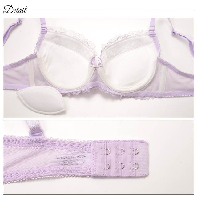 オールレースカットストリング育乳脇高ブラジャー&バック透けフルバックショーツ