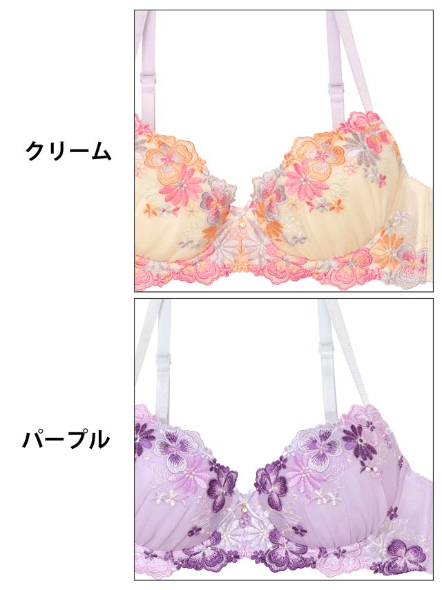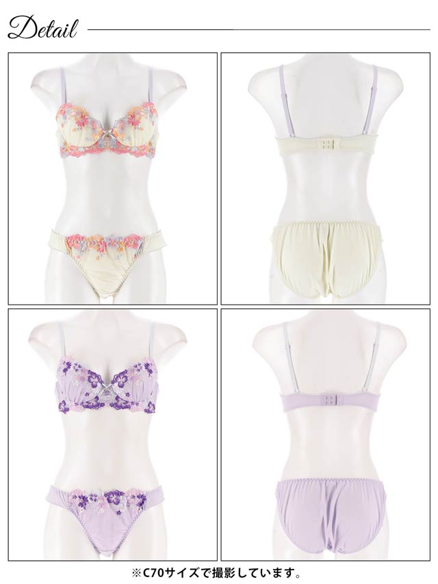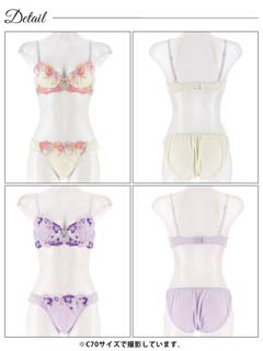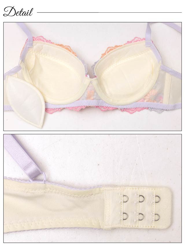ダスティブルームエンブロイダリー育乳脇高ブラジャー&バック透けフルバックショーツ