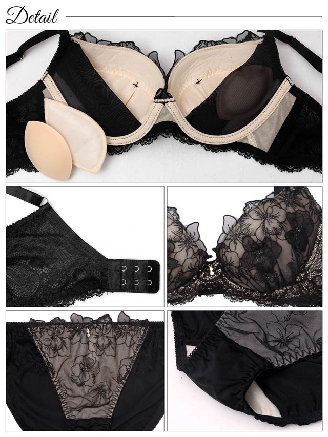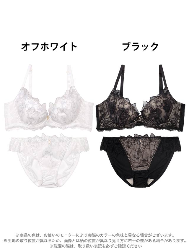 ダスティブルームエンブロイダリー育乳脇高ブラジャー&バック透けフルバックショーツ