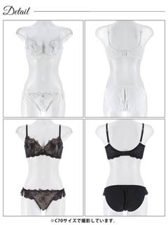 オールレースカットストリング育乳脇高ブラジャー&バック透けフルバックショーツ