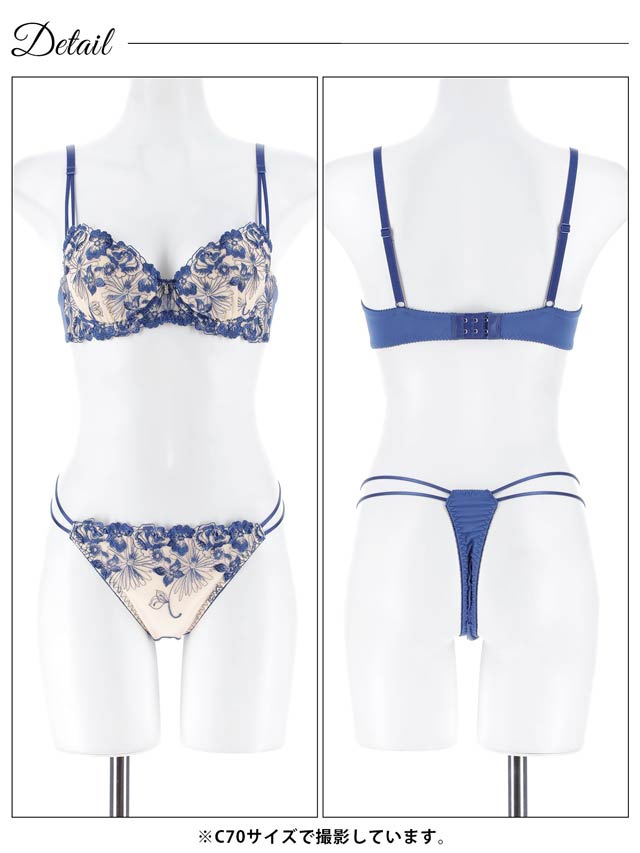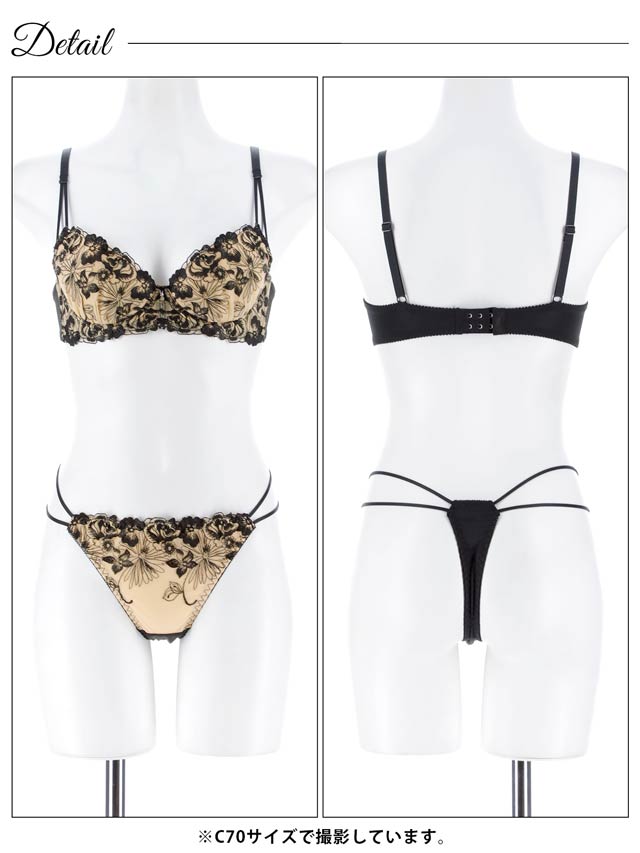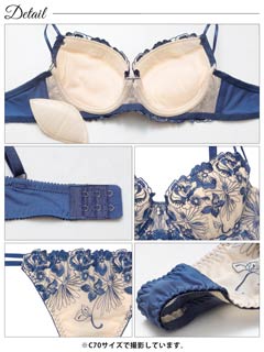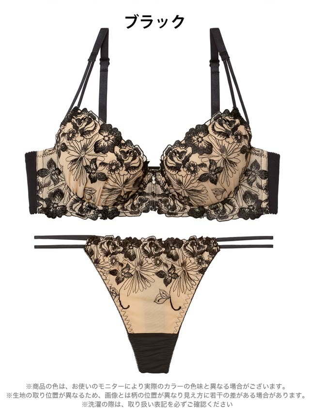 フロレゾンローズレース育乳脇高ブラジャー&サイド紐バック透けフルバックショーツ