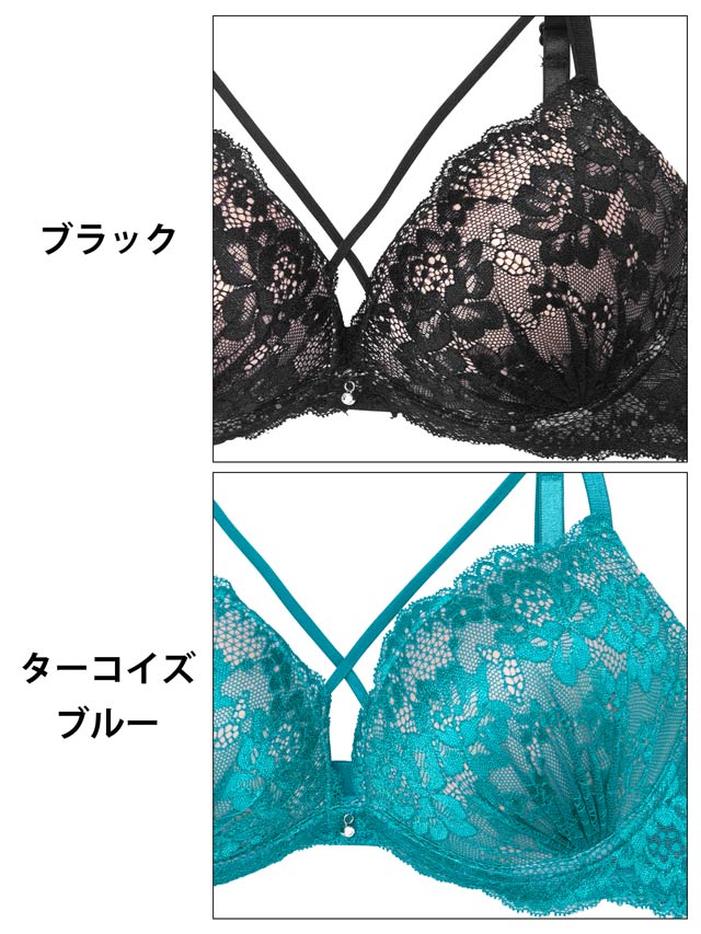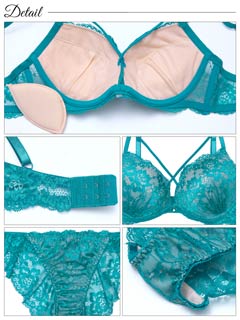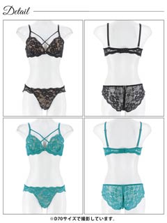 オールレースカットストリング育乳脇高ブラジャー&バック透けフルバックショーツ