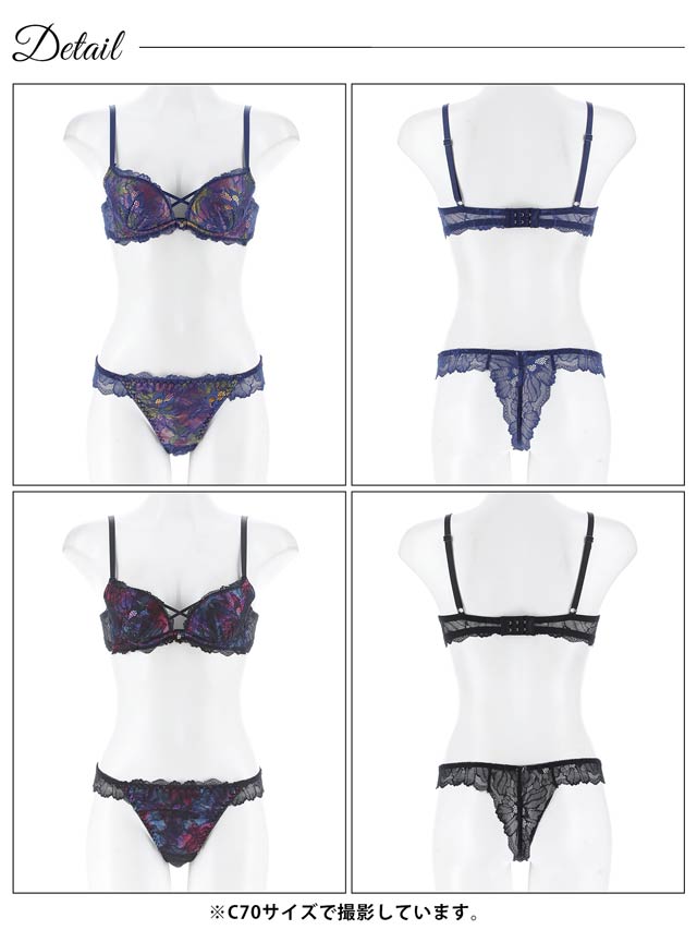 オールレースカットストリング育乳脇高ブラジャー&バック透けフルバックショーツ