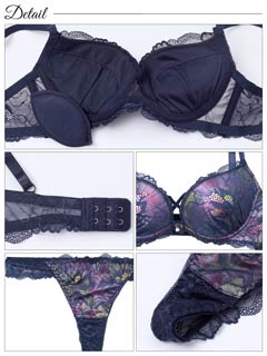 ダスティブルームエンブロイダリー育乳脇高ブラジャー&バック透けフルバックショーツ