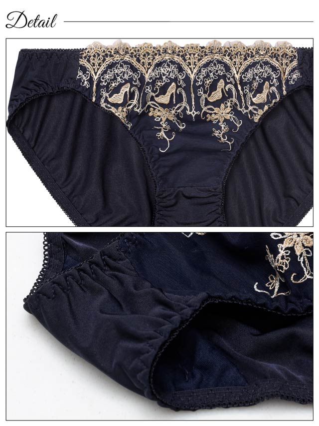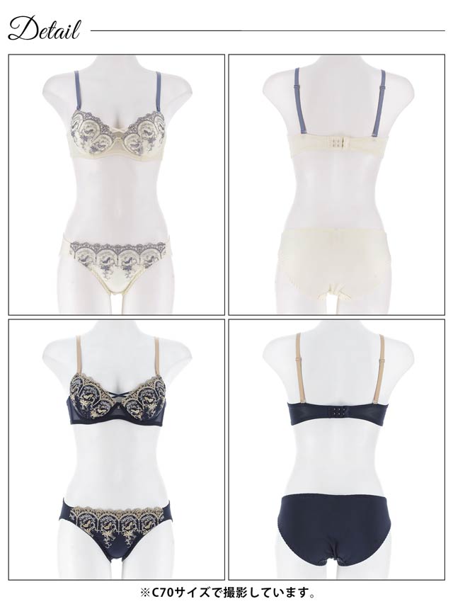 ダスティブルームエンブロイダリー育乳脇高ブラジャー&バック透けフルバックショーツ