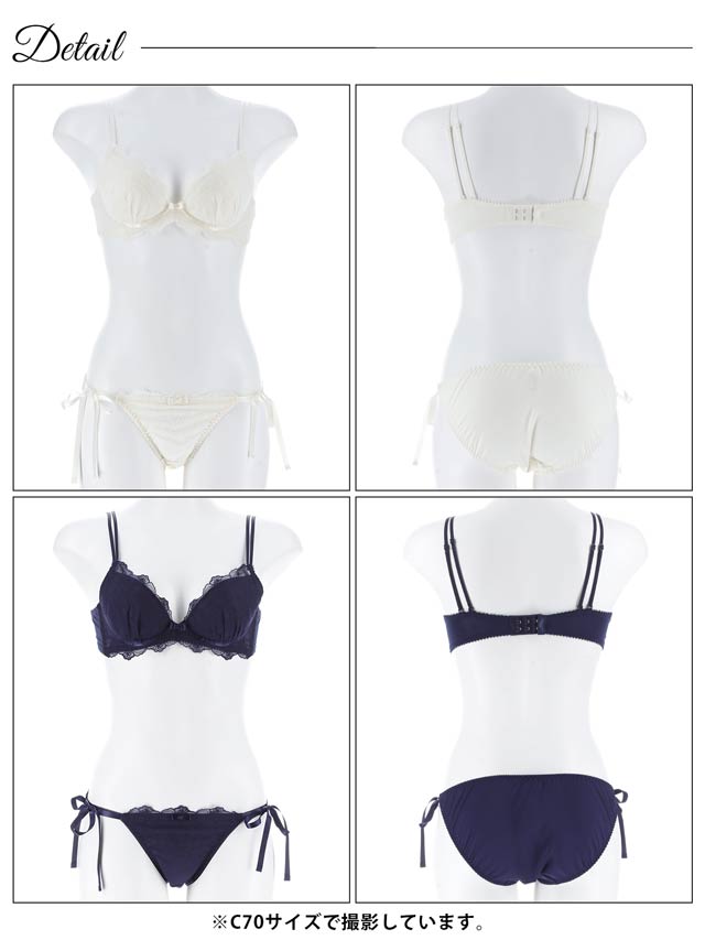 オールレースカットストリング育乳脇高ブラジャー&バック透けフルバックショーツ