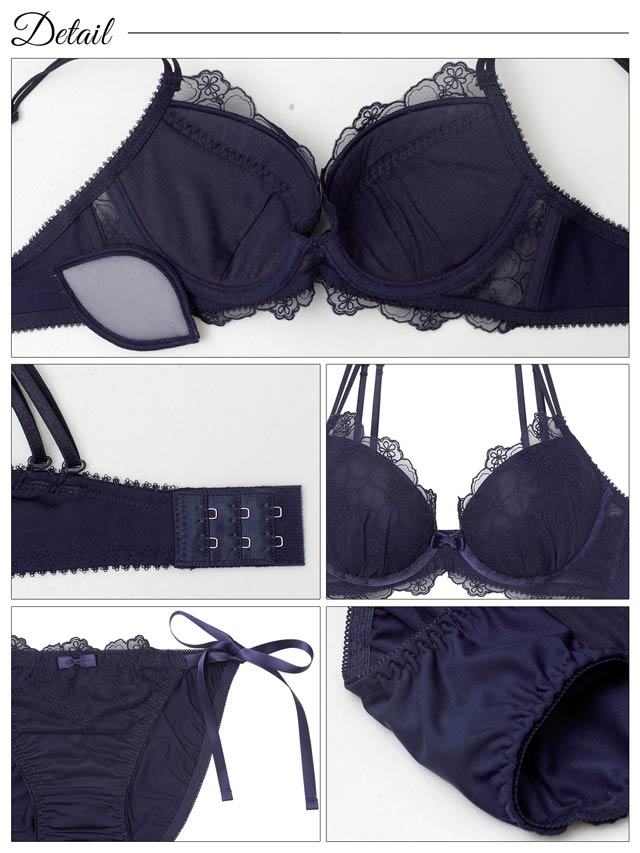 ダスティブルームエンブロイダリー育乳脇高ブラジャー&バック透けフルバックショーツ