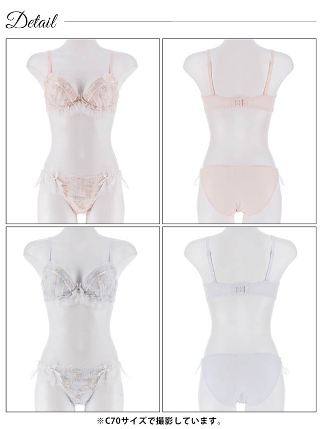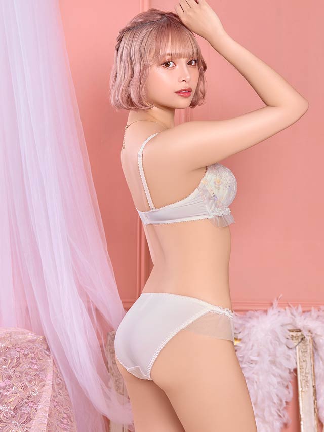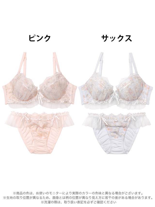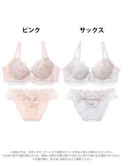 ダスティブルームエンブロイダリー育乳脇高ブラジャー&バック透けフルバックショーツ