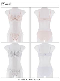オールレースカットストリング育乳脇高ブラジャー&バック透けフルバックショーツ