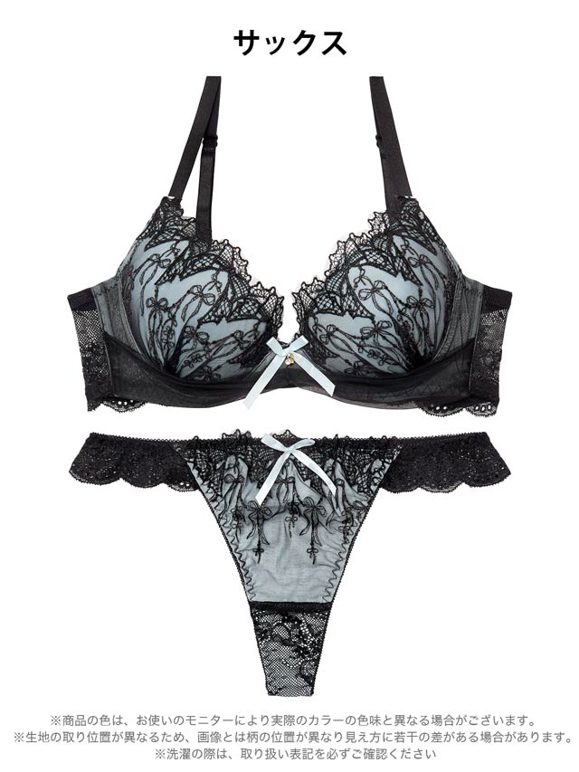 4/27新作!ノクターンリボンレース育乳脇高ブラジャー&バック透けTバックショーツ[激売れ]