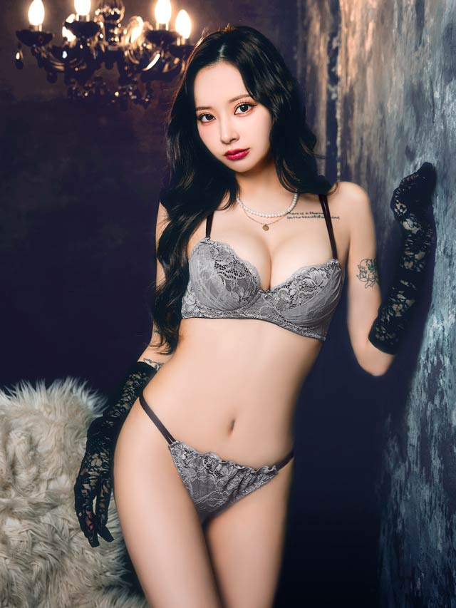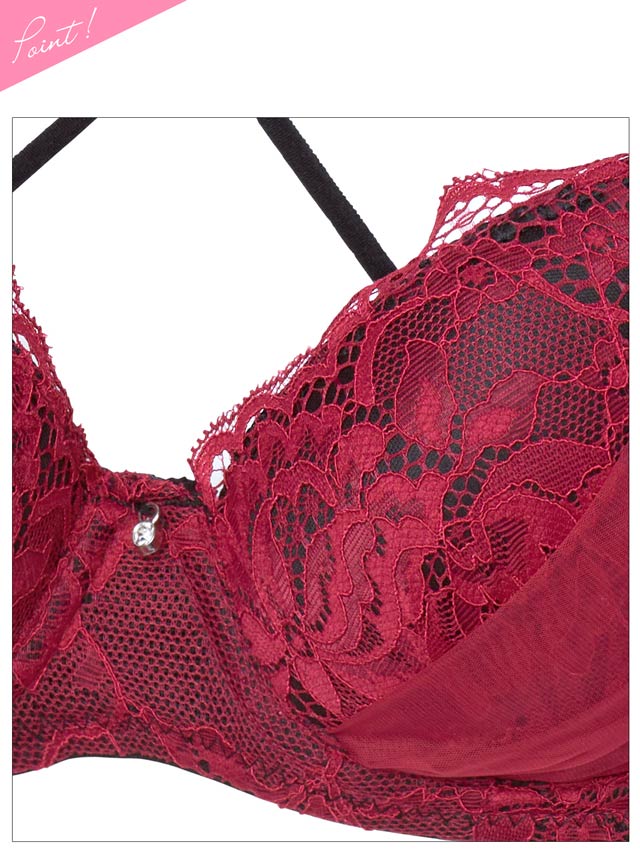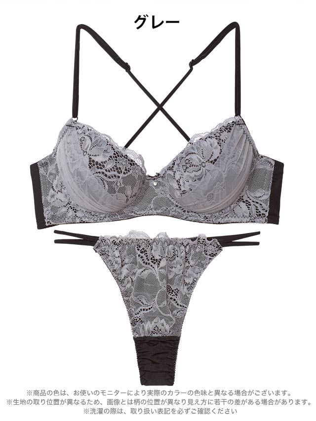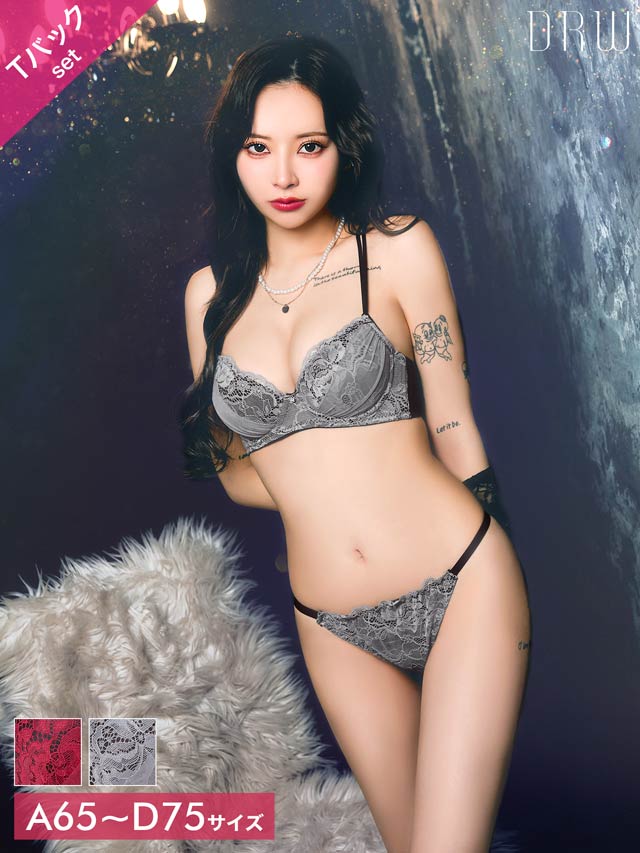 オールレースカットストリング育乳脇高ブラジャー&バック透けフルバックショーツ