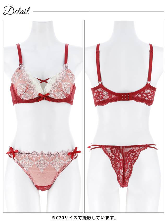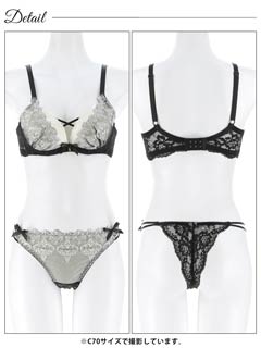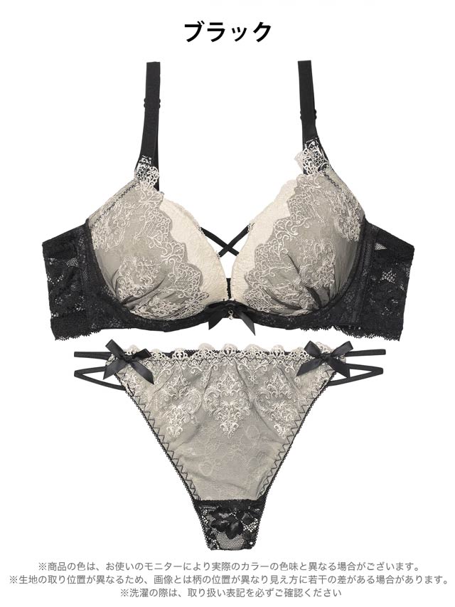 フロレゾンローズレース育乳脇高ブラジャー&サイド紐バック透けフルバックショーツ