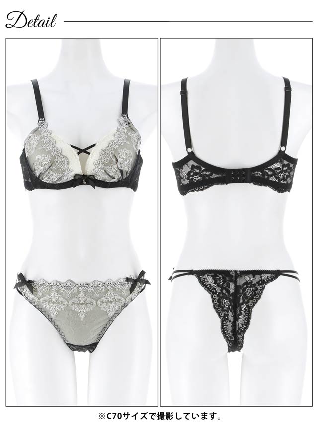 オールレースカットストリング育乳脇高ブラジャー&バック透けフルバックショーツ